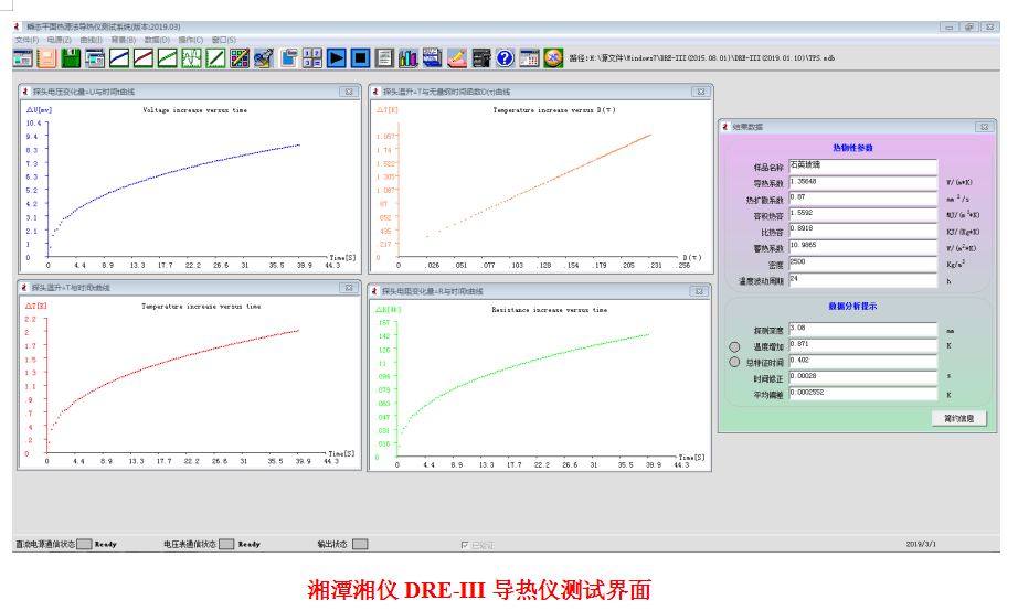 本仪器采用瞬态平面热源法,基于TPS瞬态平面热源技术,用Hot Disk探头。该仪器的优点有: