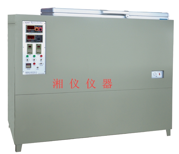 二、工作条件: 1、环境温度:0~40℃; 2、电源:220V,50 HZ; 三、仪器组成: SQ007陶瓷砖抗冻性测定仪由冷冻试验箱、贮水箱(带温控功能)及进排水系统、控温与自动控制系统三部份组成。 本仪器的工作原理是按GB/3810.12-2006国家标准要求来设计实现的。 按试验要求将电子计数器设定好试验循环次数(100次)。将试样放入试验区内,盖好盖板。制冷使试验区冷冻至-5˚C,保持15分钟,打开进水泵使水喷洒在试样上使试验温度上升至+5˚C,保持15分钟,计数器计数一次,按试验要求将电子计数器设定好试验循环次数(100次)。自动按上述循环试验,试验完后报警告示。 试验用水循环使用。