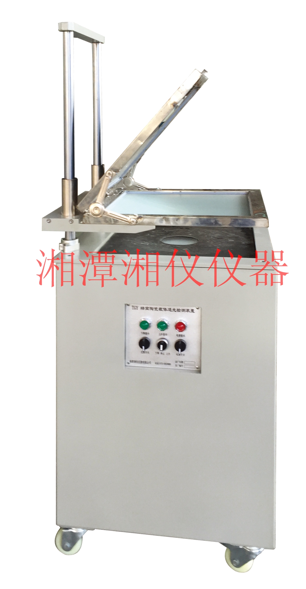 本设备由LED平面光源、透光玻璃、遮光垫、磨砂玻璃,、玻璃反光镜和气动执行机构组成.其原理是:合上光源开关使LED平面光源通电发光,光线经过透光玻璃及遮光垫上的透光孔,使得蜂窝陶瓷产品的孔道成像于磨砂玻璃上。调整玻璃反光镜与磨砂玻璃的夹角,使得操作者通过玻璃反光镜清楚地观察到磨砂玻璃上的清晰成像,并以此来判断所显示的产品是否孔道变形或堵孔。