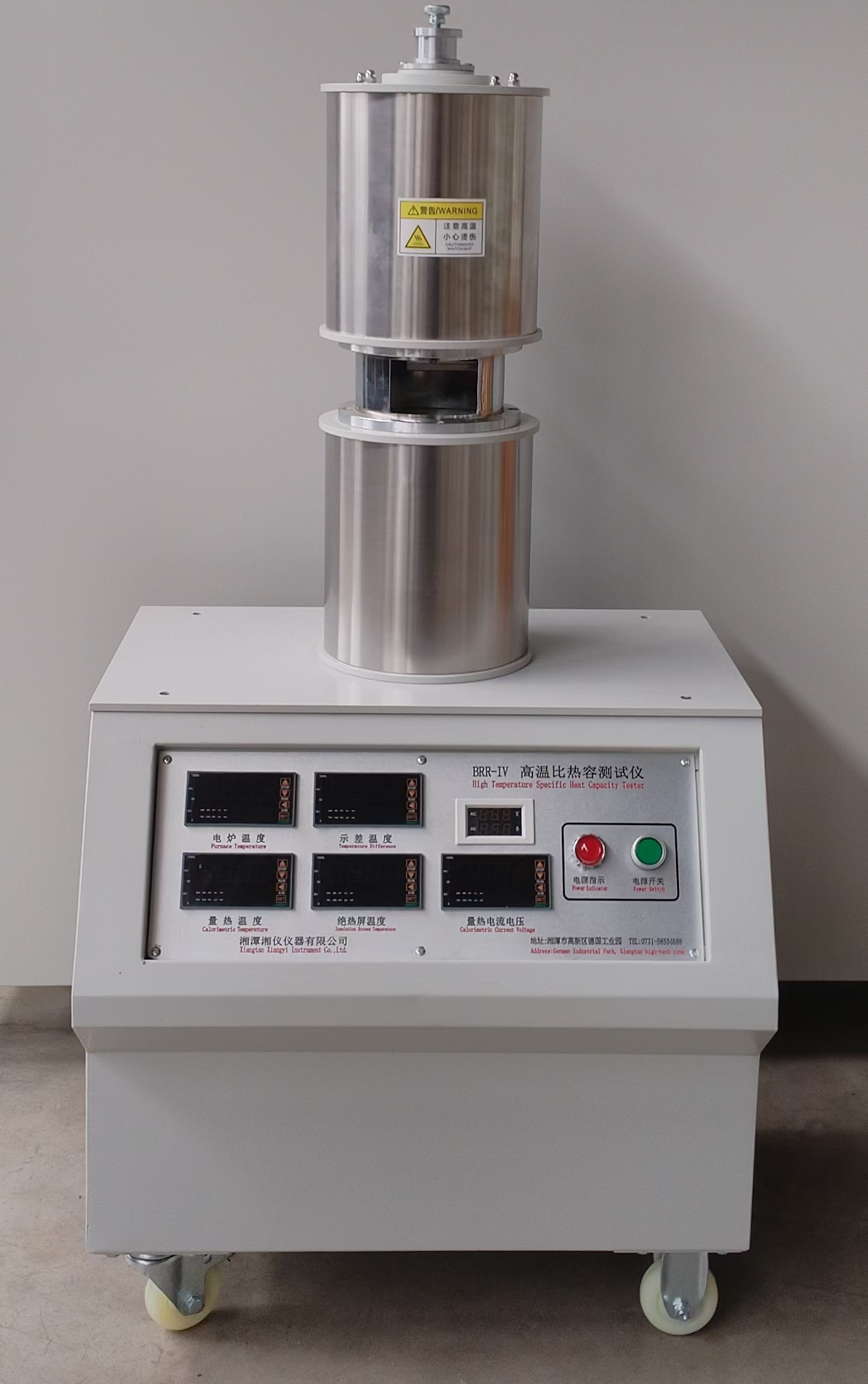 BRR-V 全自动高温比热容测试仪是混合法测试,运用计算机技术自动测试不同温度下固体材料的比热容。广泛应用于科研教学对于固体材料比热容的测试研究。实验时先将式样挂在管状加热炉中加热到实验温度,然后再落入到量热计中,全过程由计算机测量系统采集到式样和量热计的温度变化。最后得出材料的比热容。对高温易氧化的样品需要配备气氛系统。符合GJB 330A-2000固体材料比热容测试方法标准要求。此类仪器全部测量和控制均采用计算机控制,减少人为误差,提高了测试精度。